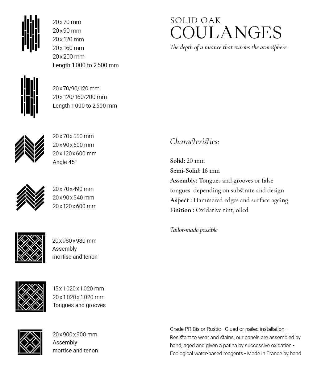 The choice of dimensions for your parquet and decking planks is of great importance. It allows you to play with the perspectives of your interiors and exteriors. While wide planks will enhance your large spaces, narrow planks will give them an unparalleled sense of grandeur.