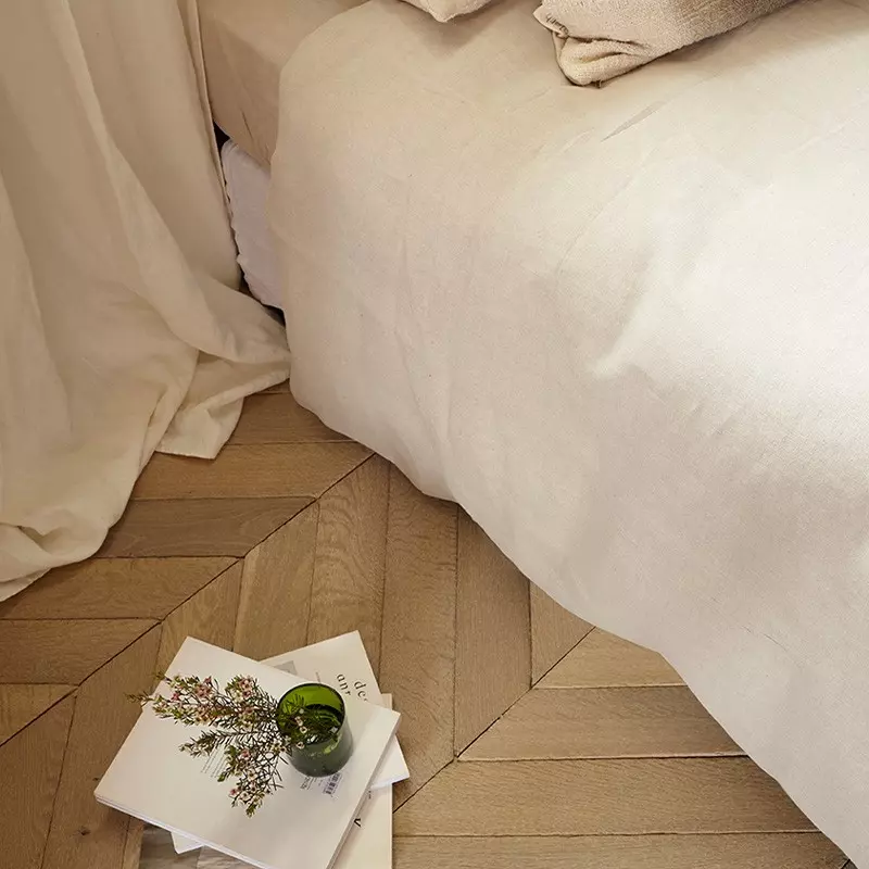 The 'Les Authentiques' collection, along with our Authentic Solid French Oak Chevron Baudelaire, pays homage to the City of Light. Allow yourself to be whisked away to a Paris imagined by the writers, poets, and artists of centuries past. Our Baudelaire Chevron, with its light pigment that mimics the look of unfinished wood, is meticulously handcrafted in our premier French workshops. This iconic parquet pattern recalls the Haussmannian apartments of bygone eras, seamlessly blending historical charm with modern interiors.