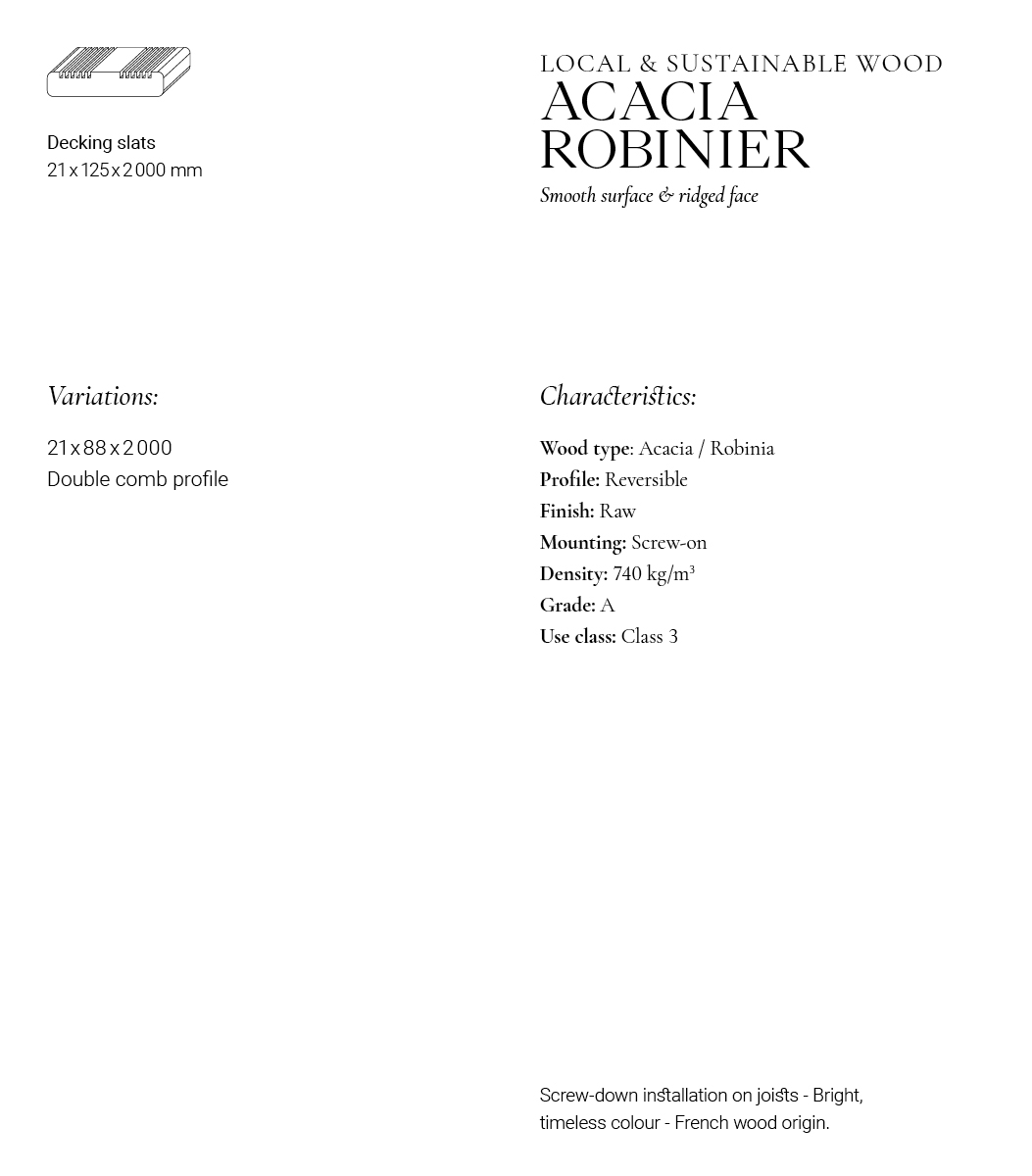 • Lames de Terrasse Acacia Brut - 21x125x2000 - vue de profil - carresol