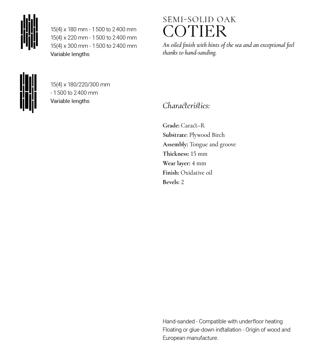• Plancher Sable Chene Cotier - 15x220x1500/2400 - choix Caract-R - produits entretien - carresol