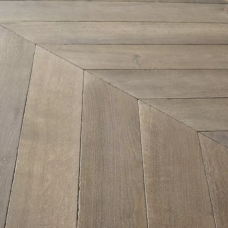Aged Solid Oak Wood Parquet Flooring Chevron Pattern Old Stone