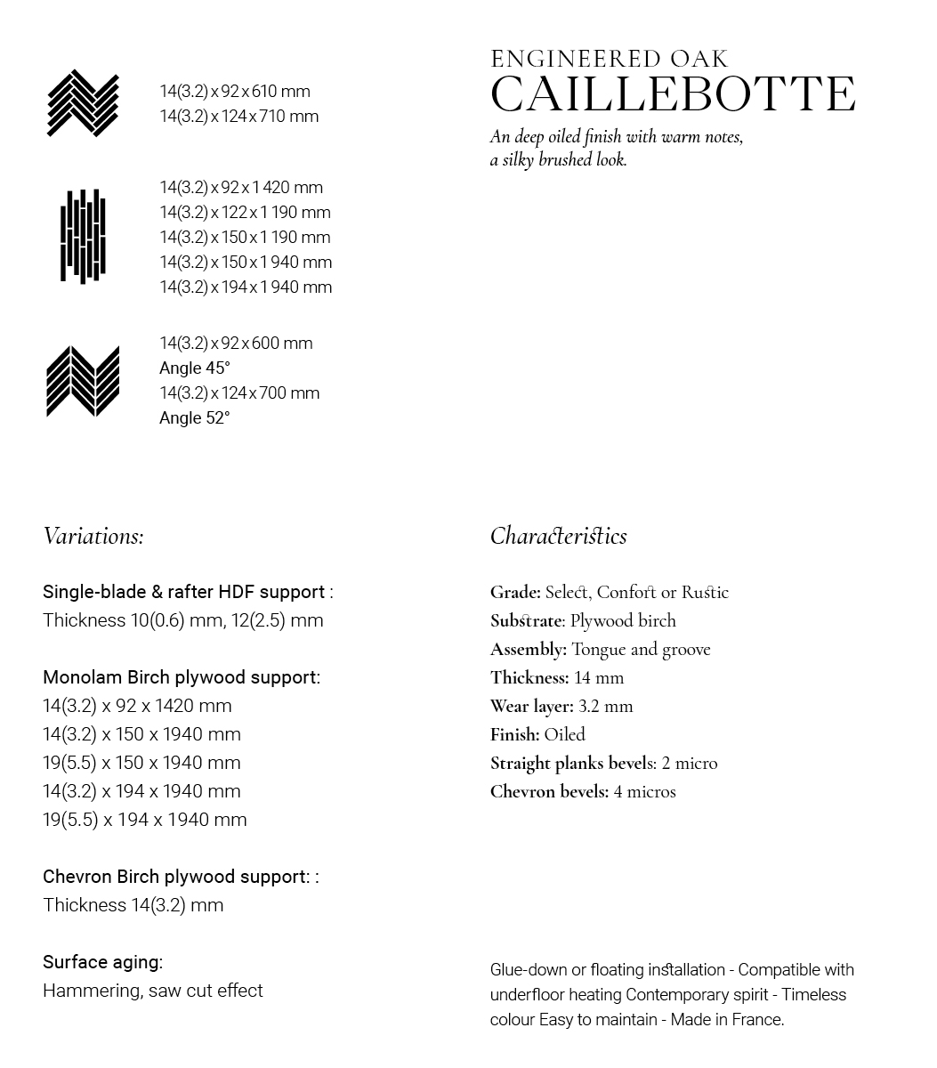 Customize your spaces with this versatile collection select your wood, finish, and pattern, and tailor the width and length of your planks to create an interior that truly reflects your style. Our Caillebotte Engineered Oak wood flooring is available in Chevron, Herringbone, and straight planks, offering endless combinations from a single shade.