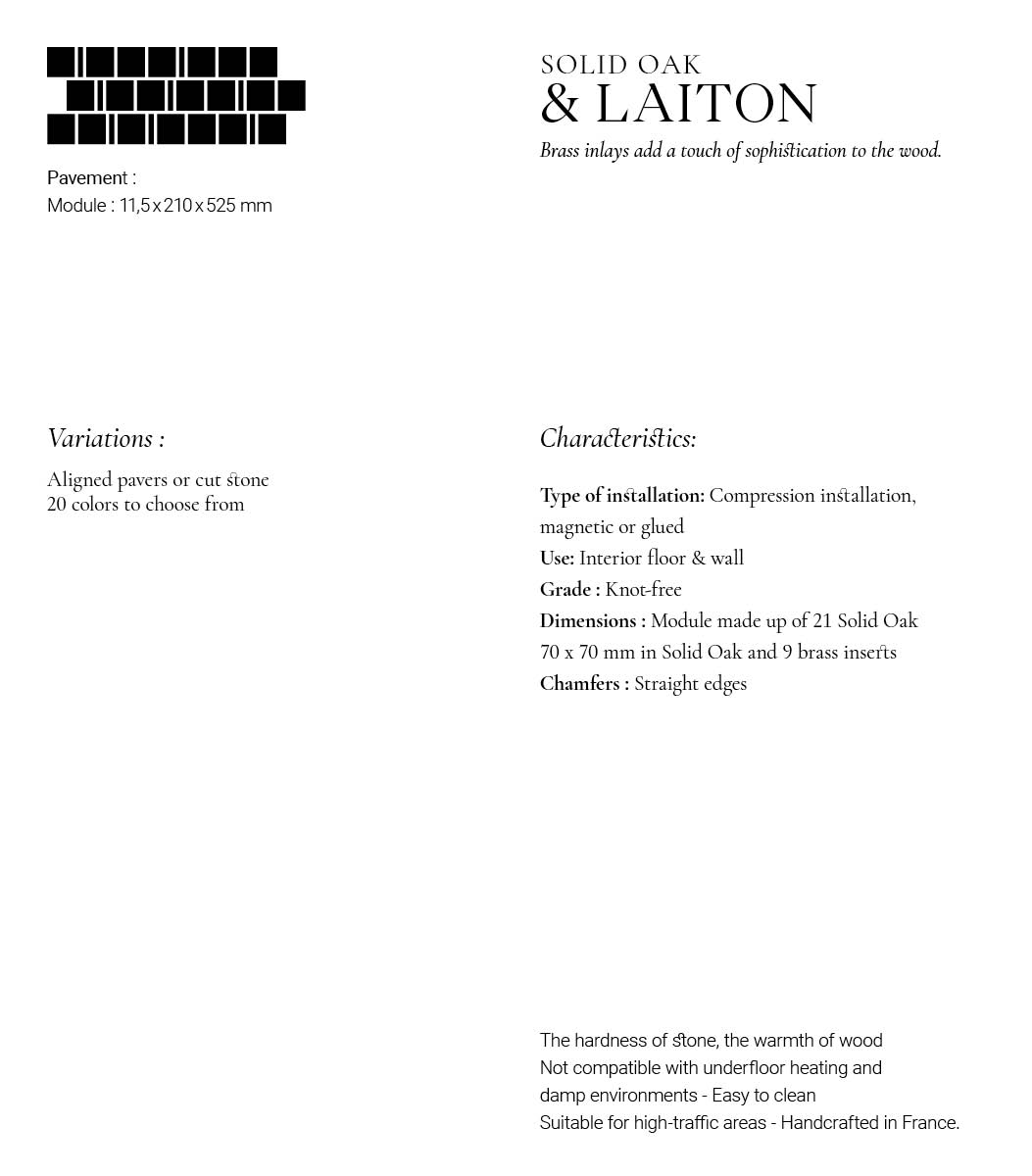 Reconnect with history through 'Les Pavés de Paris' collection, inspired by the end-grain wood blocks that once paved the streets of major cities. Discover the beauty of our solid oak parquet with brass inlays, featuring a whitewashed oil finish that enhances the wood’s luminous tones.