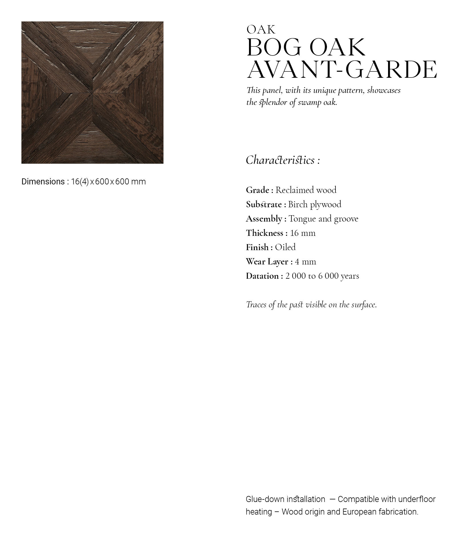 • Panneau Avant-Garde Semi-Massif Bog Oak - choix recuperation - 15x600x600 - vue de face 02 - carresol