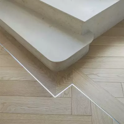 With our versatile 'à la carte' collection, you have the freedom to customize your wood flooring—choose your ideal stain, wood grade, and pattern, and personalize with custom planks in various widths and lengths. Whether you prefer Chevron, Herringbone, or straight planks, our Riviera Oak parquet flooring provides endless possibilities from a single shade, allowing you to create a truly bespoke interior.