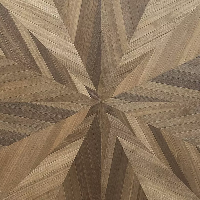 Our 'Quantième' collection and Stella Vénus Smoked parquet embody the fusion of ancestral craftsmanship with a visionary spirit. Inspired by constellations, its unique pattern evokes the shape of a star. The dynamic, bold lines bring an extraordinary perspective to your interiors. The subtly smoked finish gives the oak a soft and warm appearance. Crafted in our Italian workshop, this collection is the epitome of artisanal excellence, blending innovation with creativity