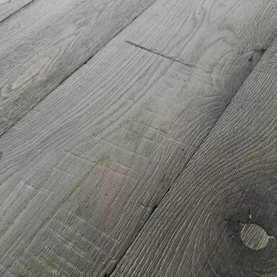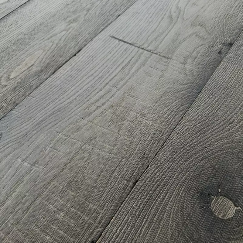 Our Philomène Semi-Solid Oak Floor is crafted from century-old beams salvaged from a historic building in Antwerp. These timeworn woods bear the marks of their first life, with knots, checks and scars that speak of their origins and past. The top layer, carefully extracted, is transformed into parquet through exceptional artisanal craftsmanship. Each plank is one of a kind, revealing the raw character and soulful beauty of aged oak. We chose upcycling as a way to honour the story of the wood, preserving its memory and authenticity, and offering it a new, lasting life at the heart of your living spaces. Our Empreinte collection embodies the natural course of time. It brings subtle and delicate nuances to your interiors, an invitation to awaken the senses and a symphony of textures underfoot.