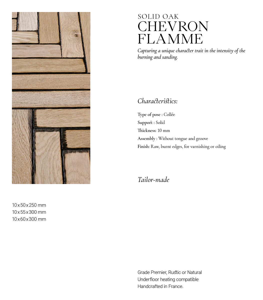 Design extraordinary spaces with our 'L'Outrenoir' collection and our Flamed Unfinished Solid Oak Herringbone Flooring.