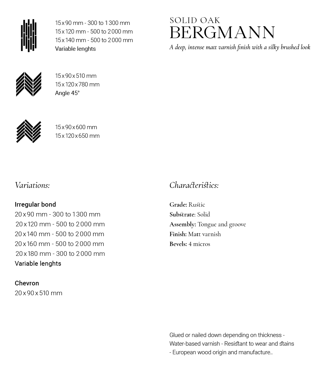 Inspired by the beauty of fleeting moments, we designed the 'Rituel' collection as an invitation to find well-being in the simplicity of everyday life. Our Solid Oak Bergmann Wood Flooring features a contrasting pigment with deep tones. It will elevate your interior by infusing it with a warm atmosphere. The artisanal brushing gives the wood a silky touch, while Its varnish finish will provide long-lasting protection against wear and scratches. Committed to preserving the environment, we engage in rigorous sourcing, prioritizing short supply chains and sustainably managed French forests.