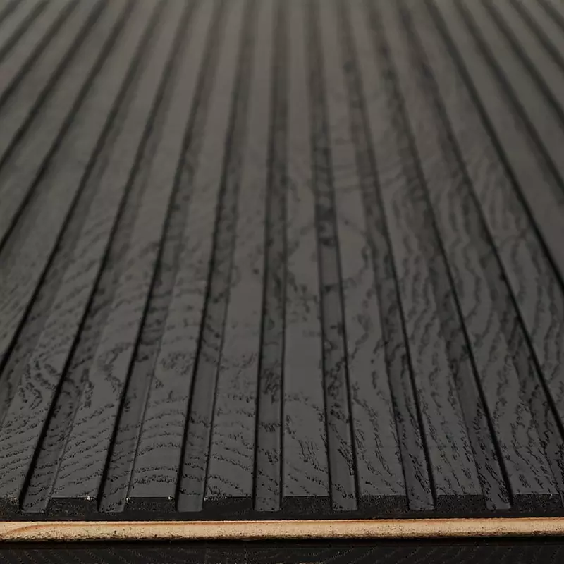 Our Intense Black Oak Wall Paneling, and its intense and deep shade, will offer your interior a resolutely contemporary atmosphere in an unparalleled graphic play. Its lacquered varnish finish will offer your wood species lasting protection, enhancing the Oak in all its authenticity. Redefine doors and walls with our “Wall Woodwork” collection: a selection of shades and profiles, offering an unrivaled spectrum of expression. Concerned about preserving the environment and the traceability of our species, we carry out a rigorous selection, favoring short circuits and sustainably managed forests.