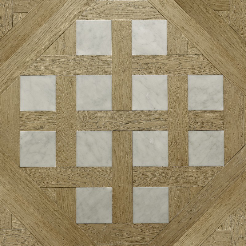 Dalles de Versailles Chêne Sanibel incrustation Marbre Carrare