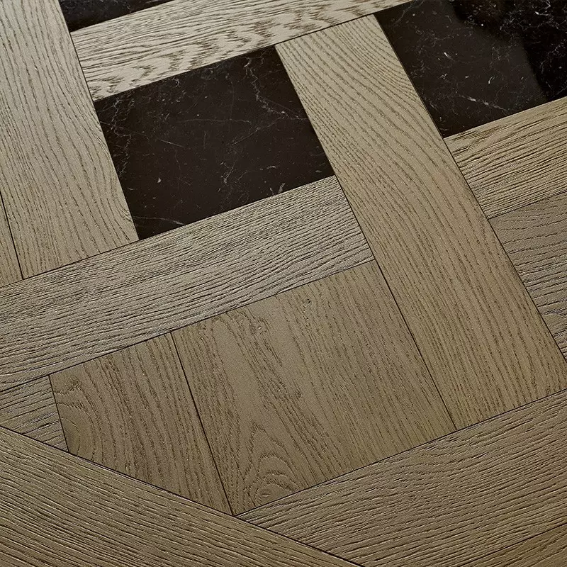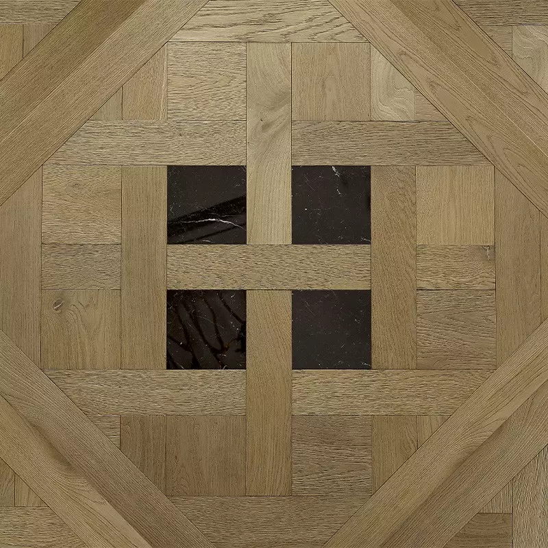 Dalles de Versailles Chêne Sanibel incrustation Marbre Marquina