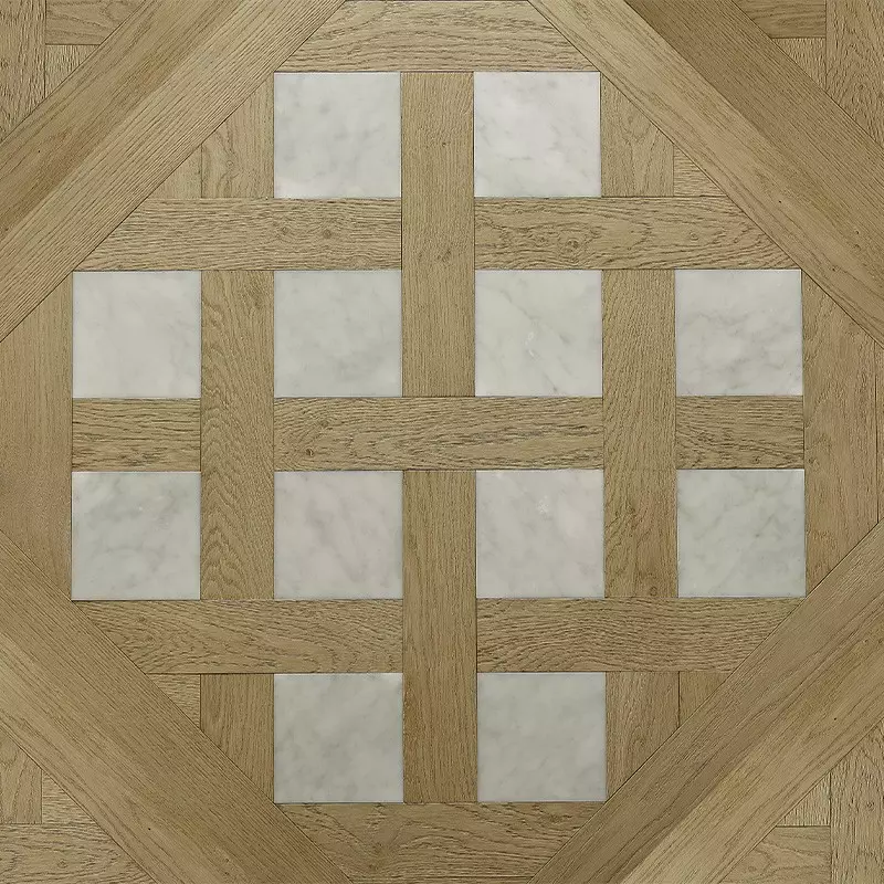 Dalles de Versailles Chene Sanibel incrustation Marbre Carrare - 15x980x980 - choix rustique - vue de face - carresol