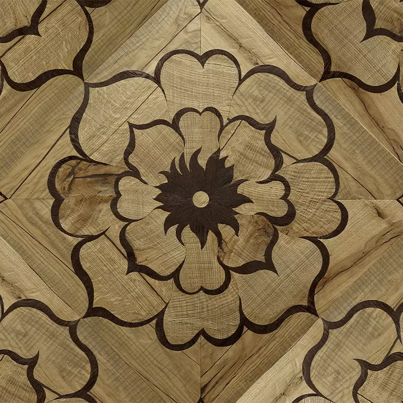 Semi-Solid Oak and Wenge Marquetry Wood Tile Fleur Antique