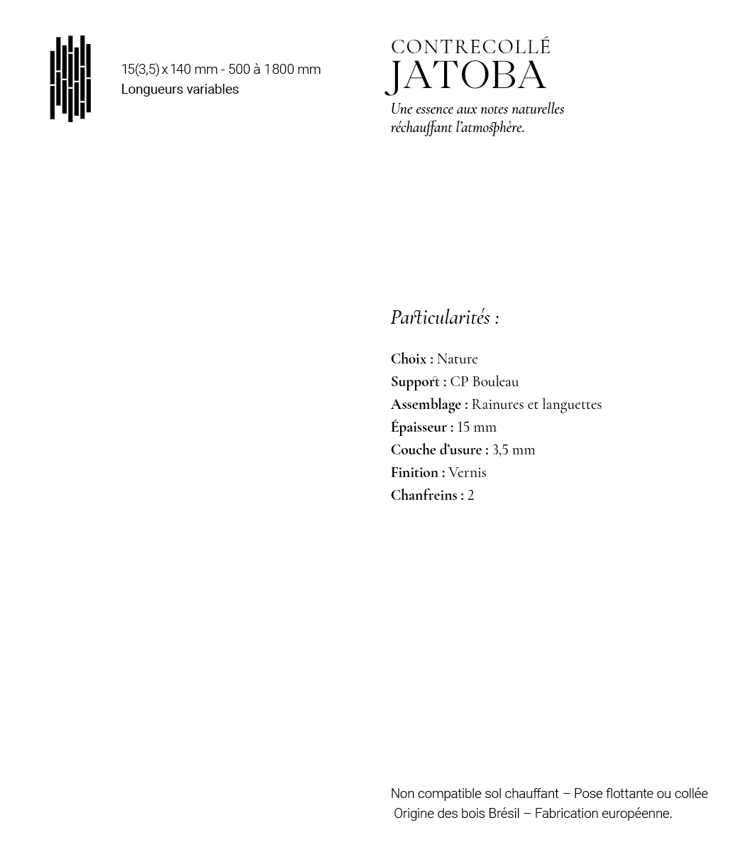 • Parquet Exotique Contrecolle Jatoba - 15x140x500-1800 - Nature - Produits entretien - Carresol