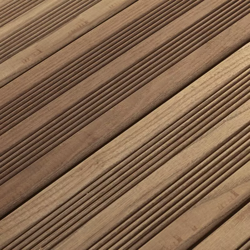 Confèrerez à vos extérieurs une ambiance chaleureuse avec nos lames de terrasses en Frêne Thermo-traité et ses nuances intenses et profondes.